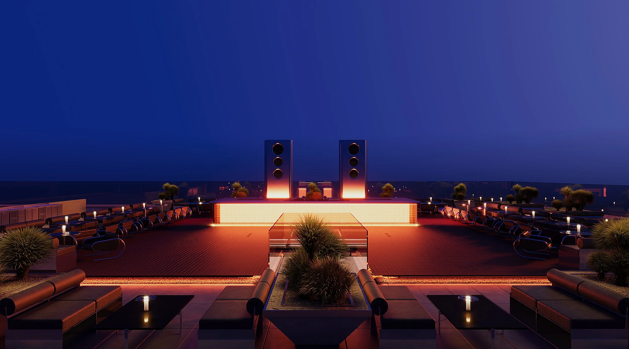 360° experimental rooftop cocktail lounge where sound, design, and cinematic ambience merge into one sensory experience above Dusit Central Park.